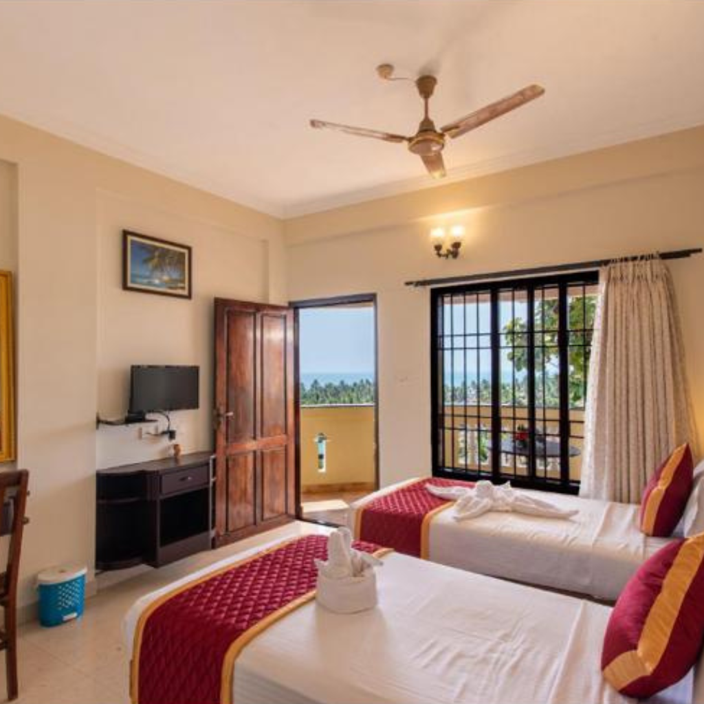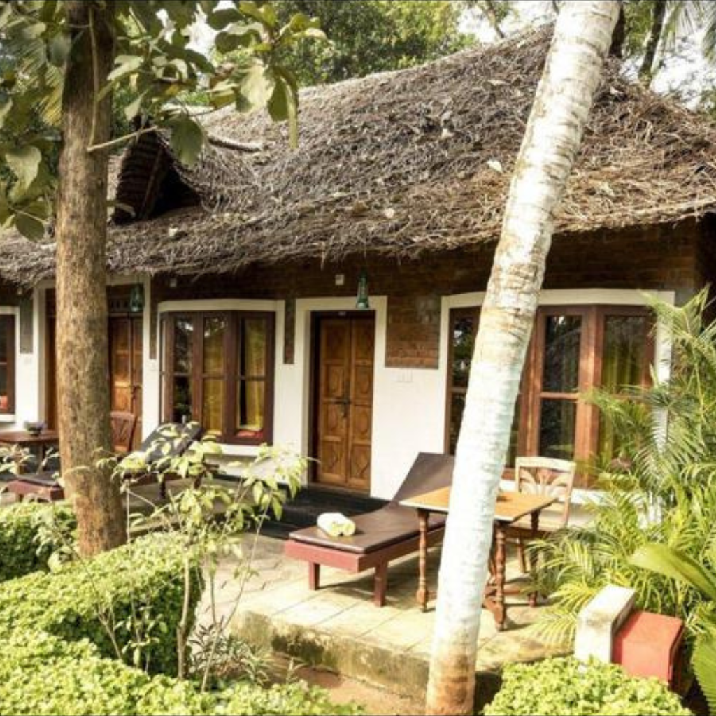 Cazarea se face în cottage-uri tradiționale, construite în stil Kerala (lemn și laterit), într-un spațiu ayurvedic tradițional, situat în mijlocul naturii (orezării, palmieri, apă)